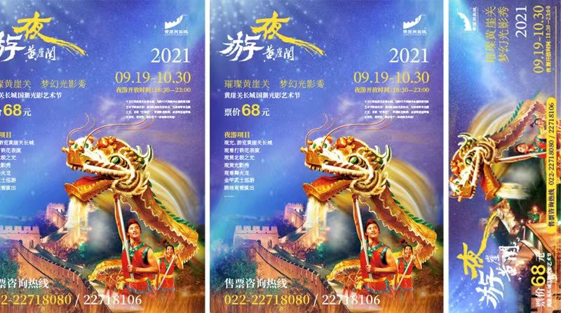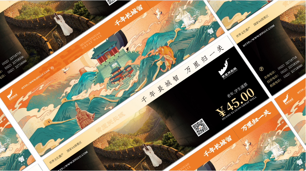 围绕“千年长城智 万里归一关”主题,在2021年进行系列品牌形象的设计及延展,从线上至线下建立统一的品牌形象,增强品牌记忆点。其中包括景区线下品牌宣传折页、景区手绘地图、品牌大巴车贴、户外广告、景区门票等,线上假日节点海报、H5小游戏、新媒体包装等。让黄崖关长城对外的品牌形象有了统一认知,全面提升了品牌的形象和价值。