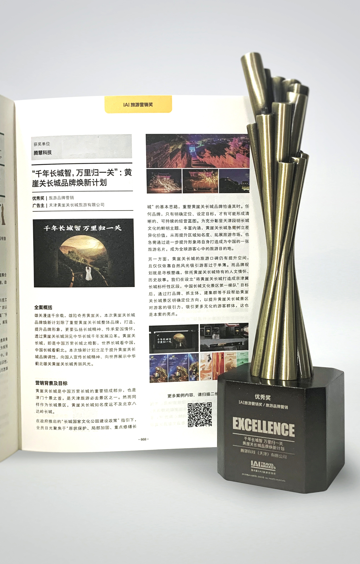 “千年长城智 万里归一关”黄崖关长城品牌焕新计划在斩获IAI旅游营销奖优秀奖,对公司而言,是得到了行业营销创意的认可与赞赏。对黄崖关长城景区而言,好的创意品牌,让景区的产品有了更深层次、更广泛的内涵和外延。也为津蓟景区品牌的宣传,做出了更专业的规划与品牌创意。