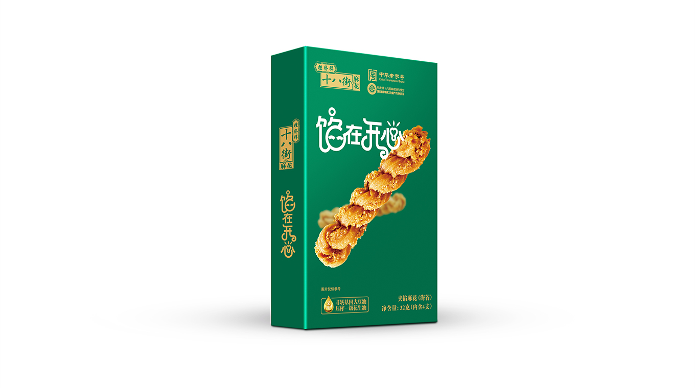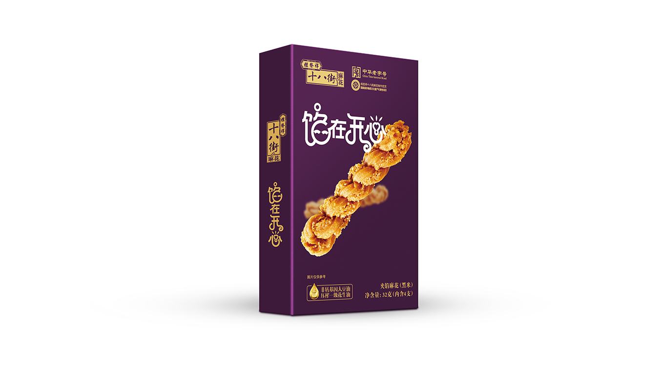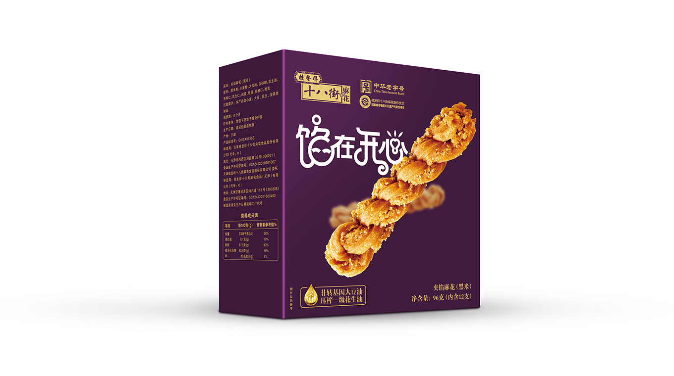 本次十八街夹馅麻花包装设计焕新升级,在设计上贴合年轻人喜好,精挑细选6种亮眼色彩,配合大幅产品展示,给消费者制造简单直接的记忆点,使其有过目难忘的魔力。文案设计上除了用可爱造型文字拉近与消费者的距离,更配合时下流行的谐音梗“馅在开心”,寓意消费者尝过此款桂发祥“夹馅”小麻花后一定有好心情有如陷在开心中难以自拔,更会陷在美味中久久回味。总的说来,整体包装设计跳脱大胆,话题性十足,以小见大展现了天津老字号桂发祥品牌敏锐把握年轻消费者喜欢,敏锐洞察最新潮流,不恋过往、敢于自我革新的勇气,以新包装为载体展示传播了天津美食和天津文化。