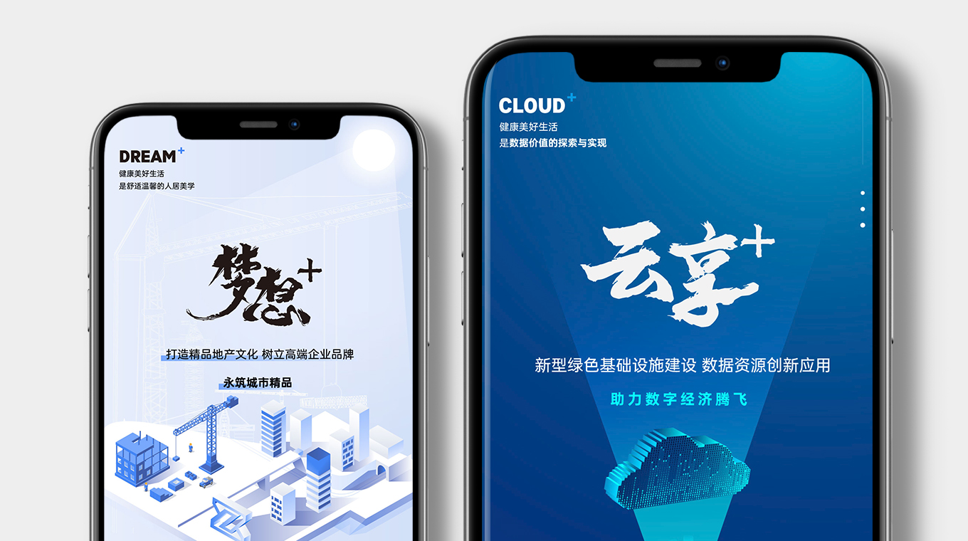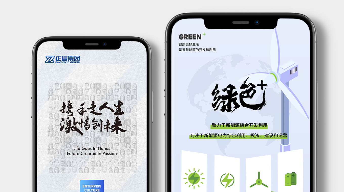 天津正信集团历经二十余载的发展,始终践行着“创造健康美好生活”的企业使命,作为企业品牌形象展示的窗口微信公众平台的策划搭建,也将围绕这一点进行延展贯穿。结合正信集团地产、金融、云科技、新能源产业布局不同特性特点,提炼出“梦想+、融e+、云享+、绿色+”四个主题对应四大产业融入整体的创意设计中,进行场景化呈现,从而突出各产业涉及的业务领域、优势,直观清晰、科技感强,符合集团品牌传递诉求,同时更具记忆点。