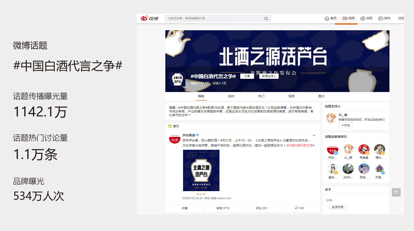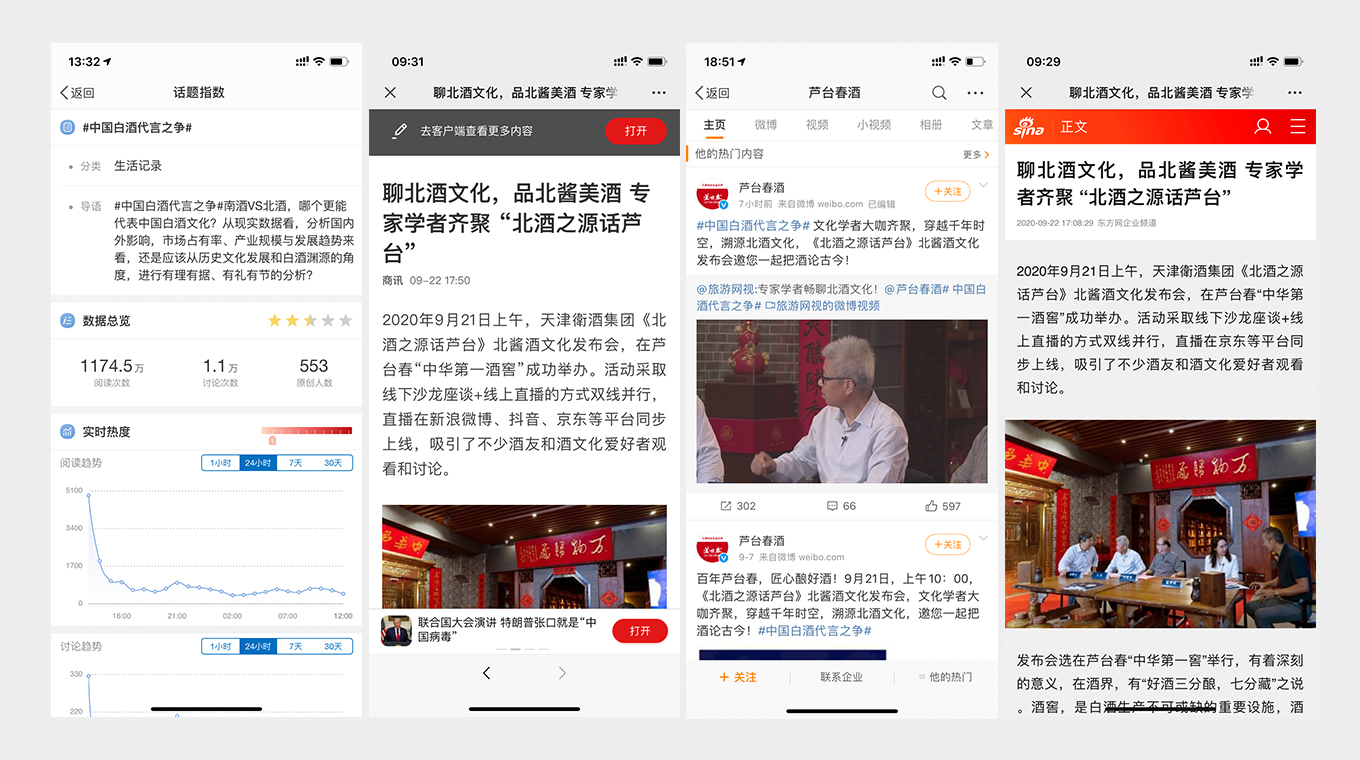 天津衛酒集团旗下芦台春酒作为天津地标白酒品牌,蕴藏着悠久的历史与底蕴,通过对品牌历史的溯源,提炼“北酒之源”的概念进行深度的挖掘与包装,以酒文化的角度切入,通过微博话题传播、线上直播发布会等新媒体传播形式进行品牌曝光,提升品牌高度和信任度。