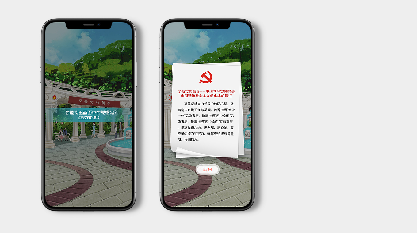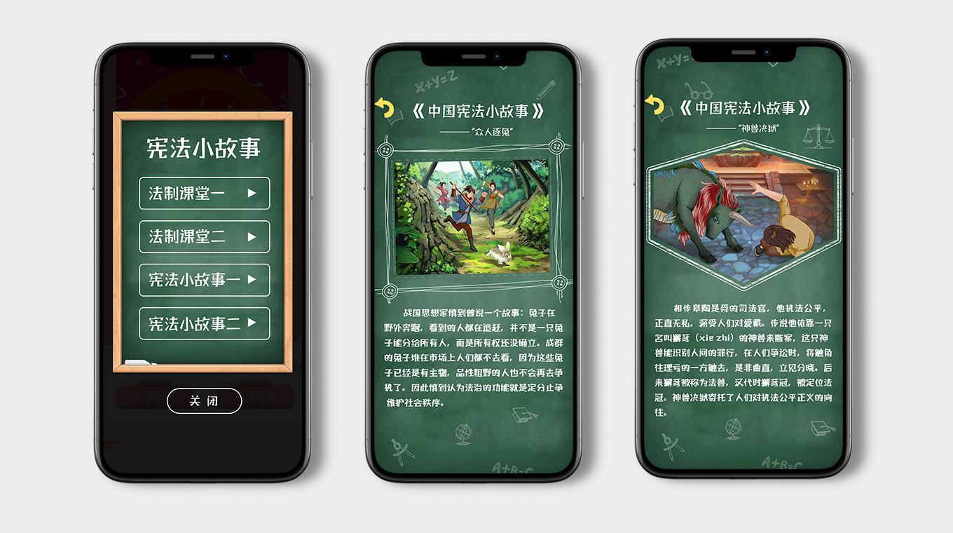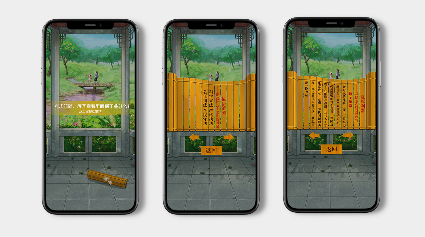配合国家宪法日宣传,为和平区司法局定制开发“宪法主题公园”H5互动游戏。手绘和平睦南公园实景图作为游戏页面背景,以游戏参与者视角游览公园各个场景点位,每个点位设置游戏关卡,以互动答题形式展示五个宪法知识并设置在线宣誓、分享抽红包等游戏环节,让更多用户参与和转发,达到宣传宪法的目的。