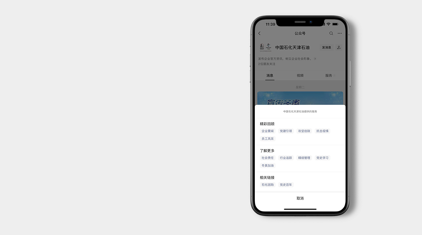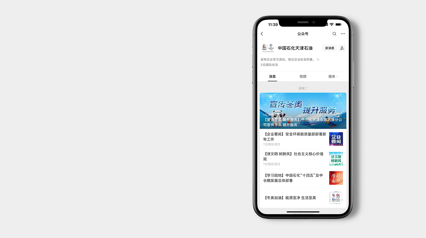 客户 中国石化销售股份有限公司天津石油分公司 类型 石油化工 内容 微信公众号运营