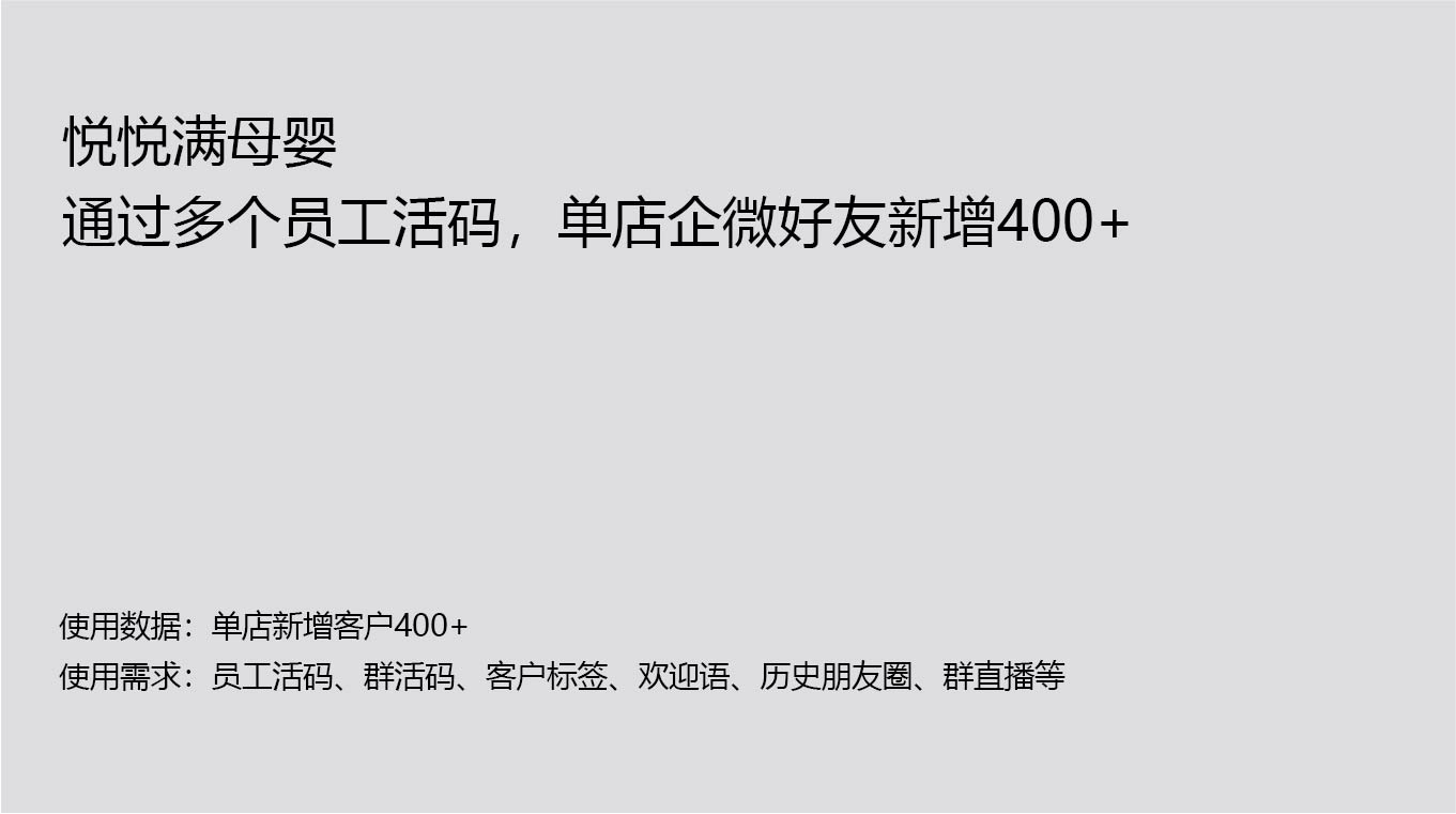内容 通过员工活码、群活码、客户标签、欢迎语、历史朋友圈、群直播等方式达到单店新增客户400+