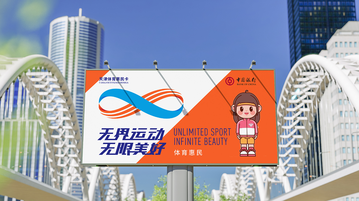 深度挖掘天津体育惠民项目鼓励市民积极参加体育健身活动,促进全民健康、拉动体育消费并扶持体育健身服务行业发展的愿景,以号召“全民运动、全民健身”作为核心创作思路,从标识图形、色彩搭配、精神象征三个维度,通过视觉传达、强化天津体育惠民品牌,助力天津城市体育名片打造。