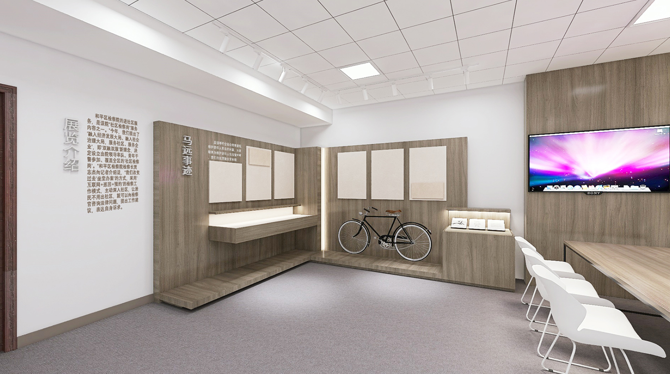 项目以和平区检察院已故离休干部马远同志忠于党、忠于人民的先进事迹为核心,充分利用空间结构满足事迹展陈、影音书籍、社区检查岗需求布局,实现在同一空间通过全方位展现新一代和检人在日常工作实践中,对标先进对红色精神血脉的赓续和传承。